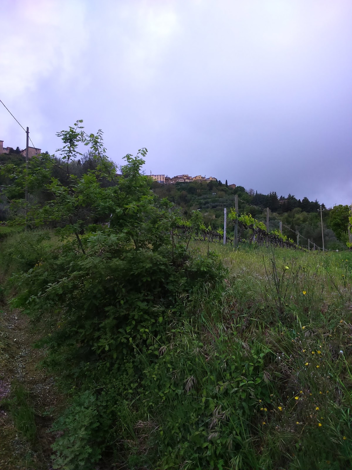 Sateen uhka leijui päällä koko ajan. Vajaan tunnin kävelyn jälkeen alkoikin sataa ja ukkostaa. Buonconventon kylästä löytyi onneksi kiva kahvila, jonne jäätiin odottamaan sään paranemista. Sisään pelmahti myös neljä venäläistä vaeltajaa. Venäläisiin ei yleensä juurikaan törmää vaelluksilla. Varsin kielitaidottomia ja happaman oloisia olivat nämä venäläiset. Johtuiko sitten sateesta vai mistä. Pitkillä vaelluksilla on ihan varmaa, että jossain vaiheessa sataa, mutta siihen on vain mukauduttava. Sade taukosi ja jatkettiin matkaa. Venäläiset tulivat perässä. Kolmella kevyet lenkkarit, yhdellä kävelykengät! Sen verran saimme selville, että olivat tänään kävelemässä vielä Quirico d'Orciaan, jonne oli vielä huomattavasti pidempi matka kuin meillä. Ihmeteltiin vähän, että toivottavasti ehtivät ennen pimeän tuloa, sen verran hitaalta näytti.
